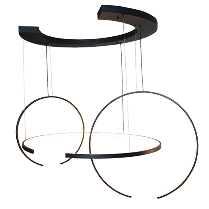 גוף תאורה בעל שלושה חישורים בצורת C אשר תלויים מבסיס שגם הוא בצורת C.