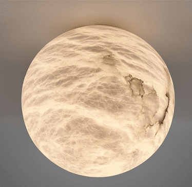 גוף תאורה עשוי מאבן אלבסטר טבעית (שיש) צמוד תקרה דקורטיבי מעוצב להארת סלון, חדרים, מטבח, משרדים וכדומה.