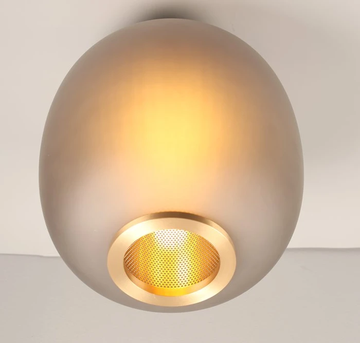 מעטפת זכוכית אפורה שעברה ליטוש חולי, רפלקטור רשת פנימי בצבע שחור או זהב ונורת לד עוצמתית משתלבים יחד ליצירת גוף תאורה עם נוכחות מכובדת מאוד ואור חזק המתאימים לפינות אוכל, אי במטבח ועוד מקומות בהם דרוש גוף תאורה עם נוכחות משמעותית.