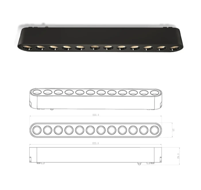12W גוף תאורה עדשות למערכת תאורה מגנטית שחור