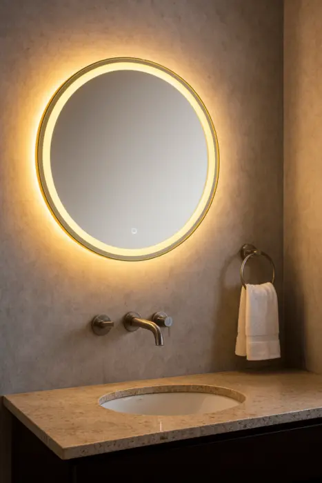 מראה עגולה לד תאורה קדמית עם מפשיר אדים